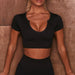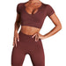 Wholesale Bust Short Sleeve Shorts Suit U Neck Seamless MOQ≥2 JDC-SW-Chunw002