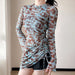 Wholesale Irregular printed style swimsuit split three piece swimsuit long sleeved sunscreen comfortable quick drying mesh thin swimsuit