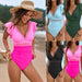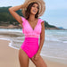 Wholesale Mesh splicing swimsuit with ruffle edge one-piece swimsuit