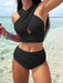 Wholesale New high waisted bikini cross neck swimsuit solid color sexy vacation swimsuit