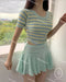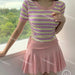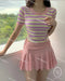Wholesale New short sleeved conservative swimsuit, split striped hot spring skirt style swimsuit