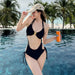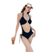 Wholesale Simple solid color lace up neck and sexy hot spring women's one-piece swimsuit