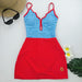 Wholesale Single piece checkered triangular swimsuit for women, embroidered red dress, vacation hot spring