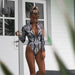Wholesale Swimsuit, leopard print one-piece bikini, long sleeved swimsuit