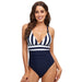 Wholesale Women's sexy color blocked swimsuit with camisole, backless one-piece swimsuit, deep V-stripe swimsuit