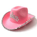 Wholesale Feather Edge Letter Cowboy Hat Sequin Pink MOQ≥3 JDC-FH-ShanY002