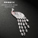 Wholesale Diamond-encrusted Retro large long-tail crystal peacock tassel brooch sweater jewelry