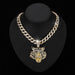 Wholesale Alloy Three-Dimensional Full Diamond Tiger Pendant Necklace Jewelry