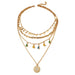 Wholesale Geometric Round Tassel Neck Chain Ring Rhinestone Tassel Pendant 4-Layer Necklace