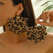 Wholesale Leopard print exaggerated fabric petal boho trend earrings retro high-end earrings