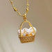 Wholesale Magic Chain Pearl Small Flower Basket Necklace Flash Diamond Clavicle Chain