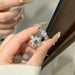 Wholesale Minimalist round bead flower ring with niche design, butterfly purple diamond layered with heart-shaped index finger ring