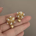 Wholesale Retro metallic butterfly earrings, high-end floral earrings, versatile, exaggerated, niche earrings