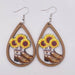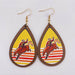 Wholesale Retro Wooden Earrings Western Denim Series Cowhead Sunflower Boho Earrings