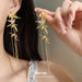 Wholesale Silver needle bamboo leaf tassel earrings new Chinese style fashion temperament niche cold style earrings light luxury high-end earrings for women