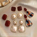 Wholesale Silver needle wine red light luxury retro female temperament pearl earrings high-end earrings