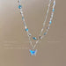 Wholesale Summer style blue butterfly necklace for girls, cool and high-end design, collarbone chain, double-layer, niche