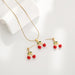 Wholesale Sweet fruit series strawberry cherry oil drop pendant stainless steel earrings necklace jewelry suit