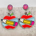 Wholesale Teacher' s Day Earrings Pencil Book Wooden Earrings Glitter Earrings