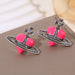 Wholesale Three-color oil-drop heart Saturn micro-inlaid zircon earrings