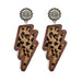 Wholesale Western lightning earrings classic leopard print genuine leather inlaid wood texture earrings