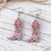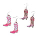 Wholesale Western style pink heart flower leaf double-sided pattern cowboy boots wooden earrings fashion gift