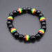 Wholesale Yellow Green Red Black Jamaica Stretch Bracelet Letter Resin Black Gallstone Wooden Beads Jamaica