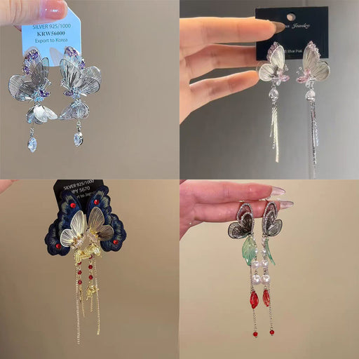 Original price USD$0.42 - Original price USD$1.53Original price USD$0.42USD$0.75 - USD$3.06USD$0.75 - USD$3.06Current price USD$0.75Wholesale Sparkling diamond dynamic hollow butterfly tassel earrings, light luxury temperament, high-end feeling, niche earrings, exaggerated earrings