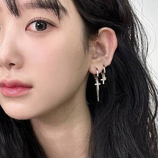 Original price USD$0.36 - Original price USD$0.36Original price USD$0.36USD$0.65 - USD$0.68USD$0.65 - USD$0.68Current price USD$0.65Wholesale Double layered cross studded diamond earrings with neutral tassels and asymmetrical cross shaped ear loops