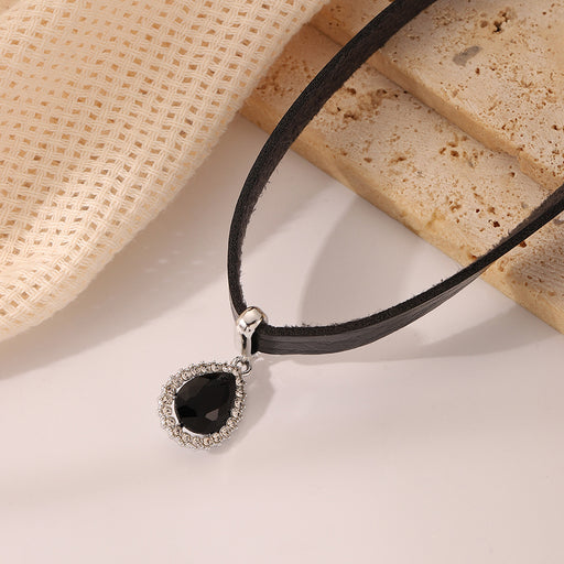 Original price USD$0.44 - Original price USD$0.44Original price USD$0.44USD$0.79USD$0.79 - USD$0.79Current price USD$0.79Wholesale Fashionable, versatile, personalized, simple, short, water droplet full diamond pendant, leather rope necklace accessory