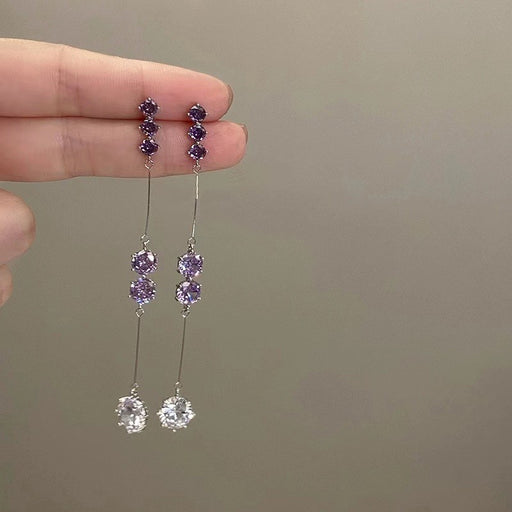 Original price USD$0.76 - Original price USD$0.76Original price USD$0.76USD$1.53USD$1.53 - USD$1.53Current price USD$1.53Wholesale Purple zircon tassel earrings, new fashionable and versatile, light luxury temperament, exquisite earrings