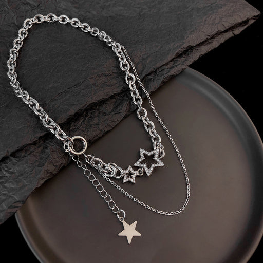 Original price USD$0.13 - Original price USD$0.40Original price USD$0.13USD$0.26 - USD$0.73USD$0.26 - USD$0.73Current price USD$0.26Wholesale Star shaped titanium steel cross necklace, light luxury zircon sparkling diamond collarbone chain, street accessory