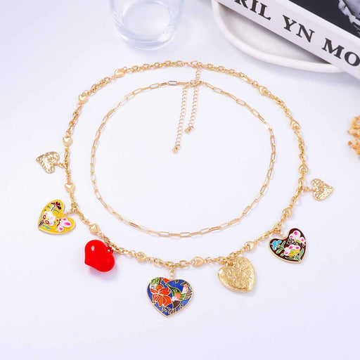 Original price USD$2.50 - Original price USD$2.50Original price USD$2.50USD$4.50USD$4.50 - USD$4.50Current price USD$4.50Wholesale Alloy Dropping Oil Multi-love Pendant Double-layer Stacked Chain Women's Necklace