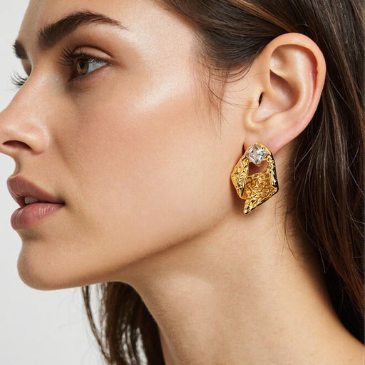 Original price USD$1.56 - Original price USD$2.09Original price USD$1.56USD$2.81 - USD$3.96USD$2.81 - USD$3.96Current price USD$2.81Wholesale Stainless Steel Earrings Asymmetrical Geometric Circle Earrings Workplace Accessible Luxury Pleated Semicircle Earrings with Diamonds