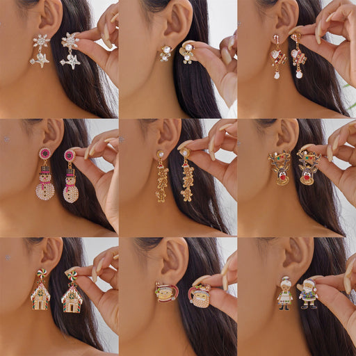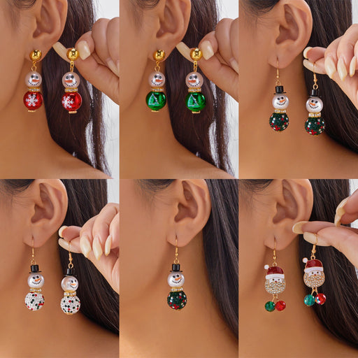 Original price USD$0.41 - Original price USD$1.19Original price USD$0.41USD$0.73 - USD$2.14USD$0.73 - USD$2.14Current price USD$0.73Wholesale Christmas element earrings cartoon full bead snowman earrings inlaid with diamonds light luxury holiday earrings