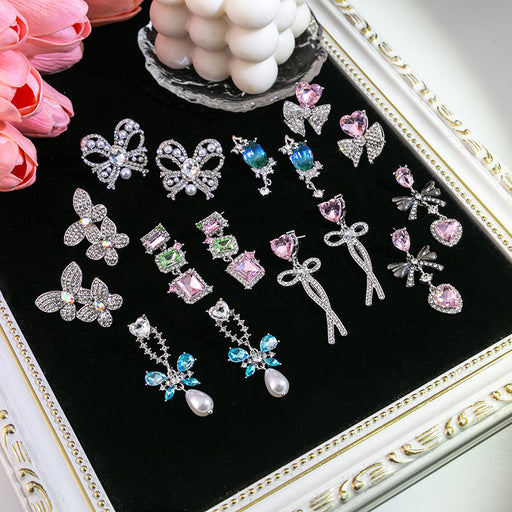 Original price USD$0.59 - Original price USD$0.90Original price USD$0.59USD$1.18 - USD$1.79USD$1.18 - USD$1.79Current price USD$1.18Wholesale Silver needle sweet pink heart earrings simple micro-inlaid zircon pearl earrings bow earrings