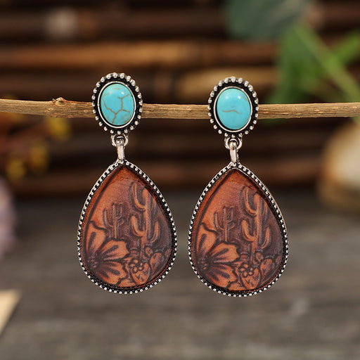 Original price USD$0.70 - Original price USD$0.70Original price USD$0.70USD$1.26USD$1.26 - USD$1.26Current price USD$1.26Wholesale Artistic retro ethnic style drop-shaped brown turquoise alloy earrings