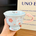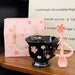 Wholesale Pink ceramic stemmed cup with cherry blossom relief design and spoon