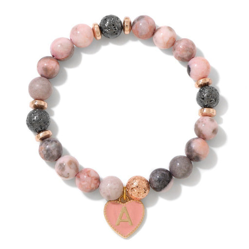 Original price USD$1.10 - Original price USD$1.10Original price USD$1.10USD$1.98USD$1.98 - USD$1.98Current price USD$1.98Wholesale 26 letter alphabet heart charm bracelet with 8mm stone beads pink zebra jasper and volcanic rock beads