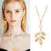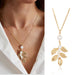 Wholesale Fashion Leaf Necklace Alloy Pearl Long Clavicle Chain Pendant Necklace in Stock